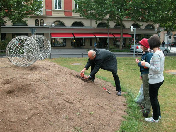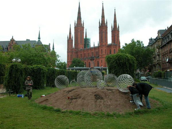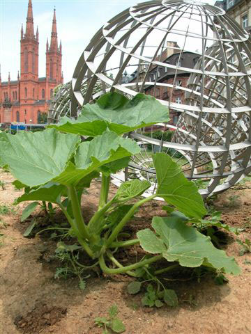 Diese Kürbis-Installation wurde im Sommer 2004 während des Wiesbadener Kunstsommers im Skulpturenpark (d.h. im Wiesbadener Kurpark) neben anderen Kunstwerken aufgestellt. Innerhalb der letzten Wochen haben sich Wiesbadener Bürger in einer Umfrage und die Stadt selbst für den Ankauf / Beibehaltung von Kutschers Kunstwerk entschieden!